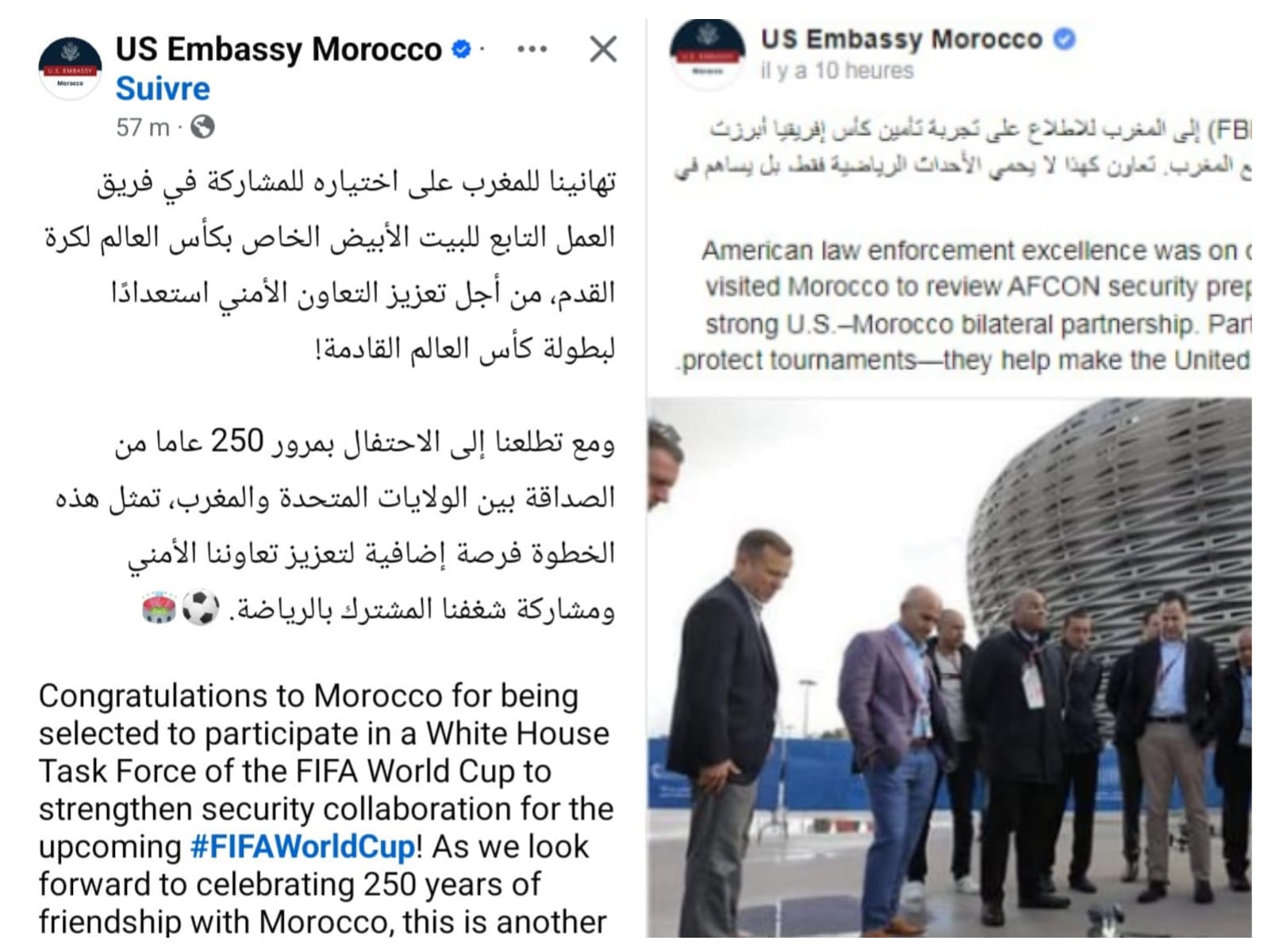 سفارة الولايات المتحدة الأمريكية بالمغرب تشيد باختيار المملكة ضمن فريق عمل البيت الأبيض لمونديال 2026