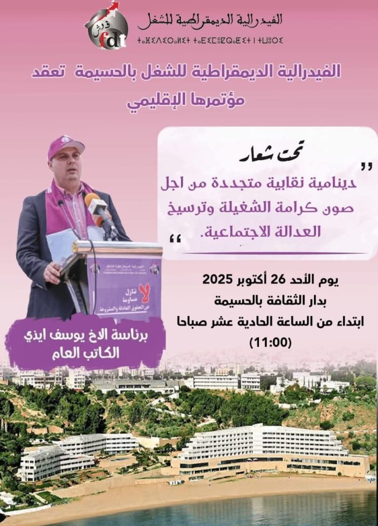 في خطوة تنظيمية ونضالية وُصفت بالمهمة في مسار العمل النقابي بإقليم الحسيمة، تم الإعلان عن تأسيس الاتحاد المحلي للفيدرالية الديمقراطية للشغل بالحسيمة، وذلك في إطار الدينامية التنظيمية التي تعرفها الفيدرالية على الصعيد الوطني، وسعياً إلى تجديد الفعل النقابي الميداني وتعزيز حضوره في مختلف القطاعات.