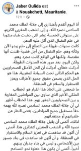 في تحول لافت يعبّر عن مراجعات فكرية متسارعة داخل أوساط الصحراويين المغاربة المغرّر بهم سابقًا، أعلن جابر أوليدة، عبر تدوينة مطوّلة على “فايسبوك”، تراجعه التام عن الأفكار الانفصالية التي تبناها لسنوات، واعتذاره الواضح لجلالة الملك محمد السادس نصره الله وللشعب المغربي