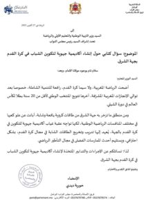 وشددت النائبة على أن جهة الشرق ومدينة وجدة تزخران بمواهب كروية شابة أبانت عن مؤهلات عالية في مختلف المنافسات، لكنها تفتقر إلى مؤسسات تكوين أكاديمية متخصصة قادرة على صقل هذه الطاقات وتأهيلها مهنياً وتقنياً وفق المعايير الحديثة.